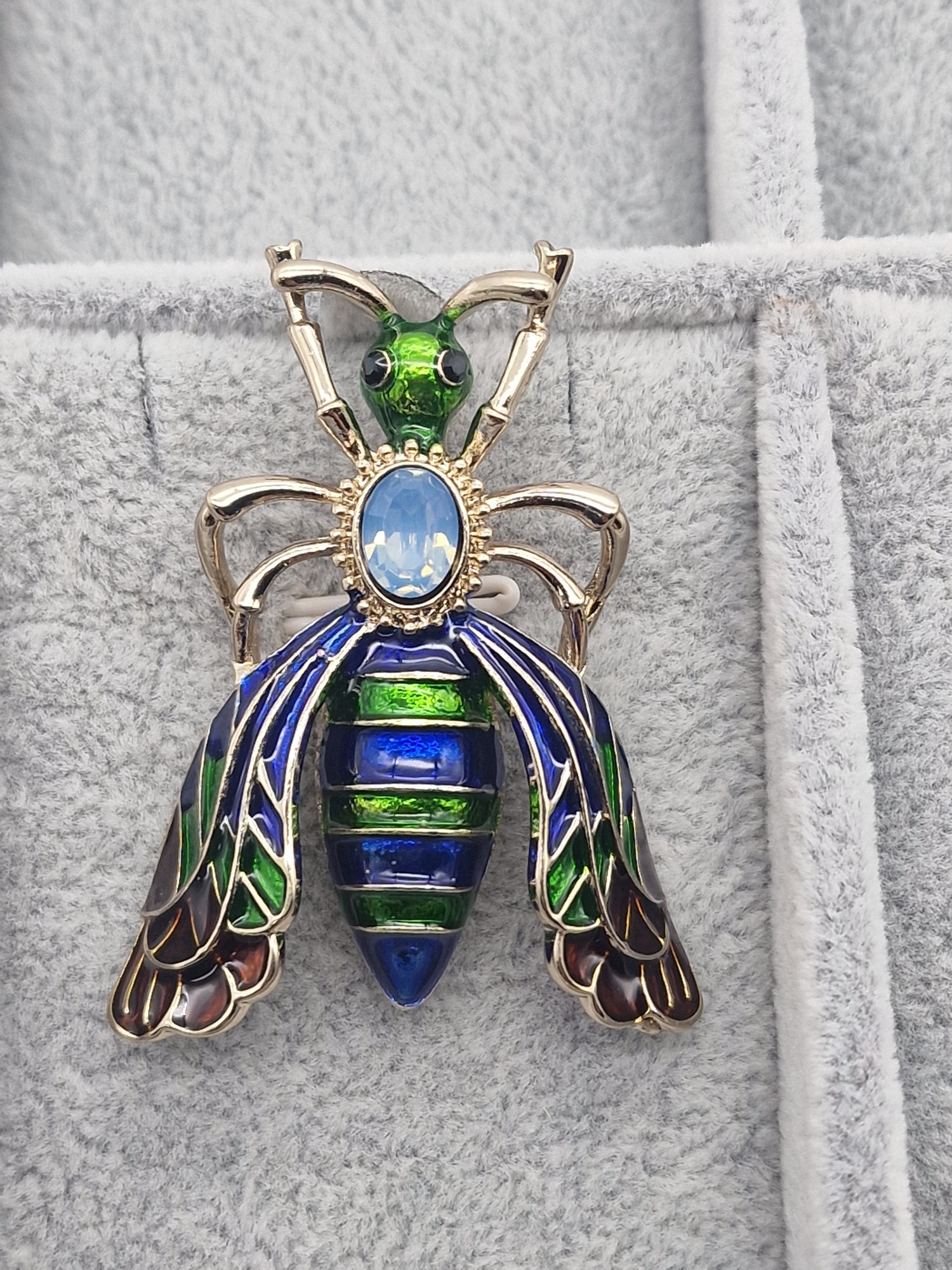 Brož se zapíná sponou ze zadní strany.