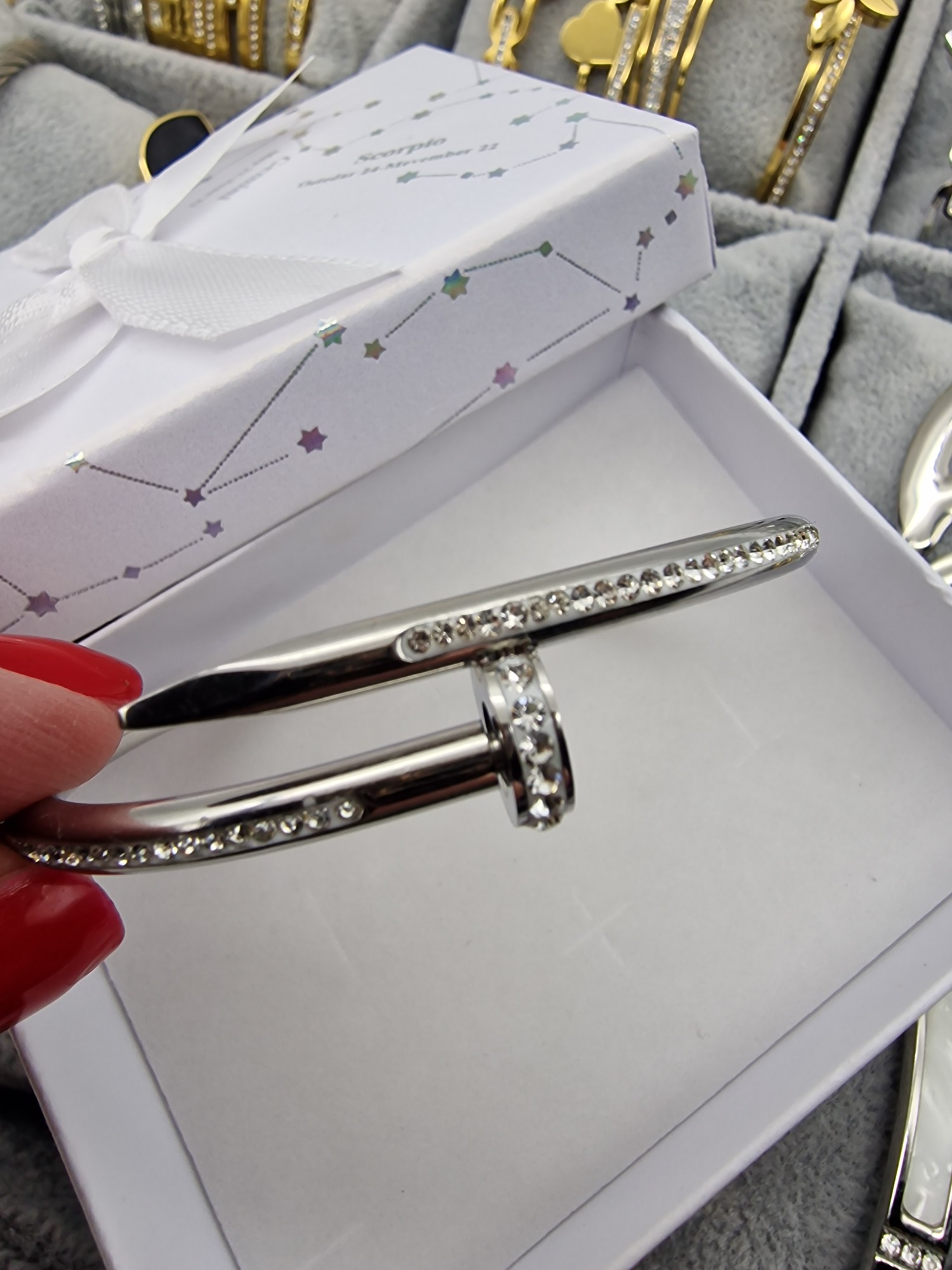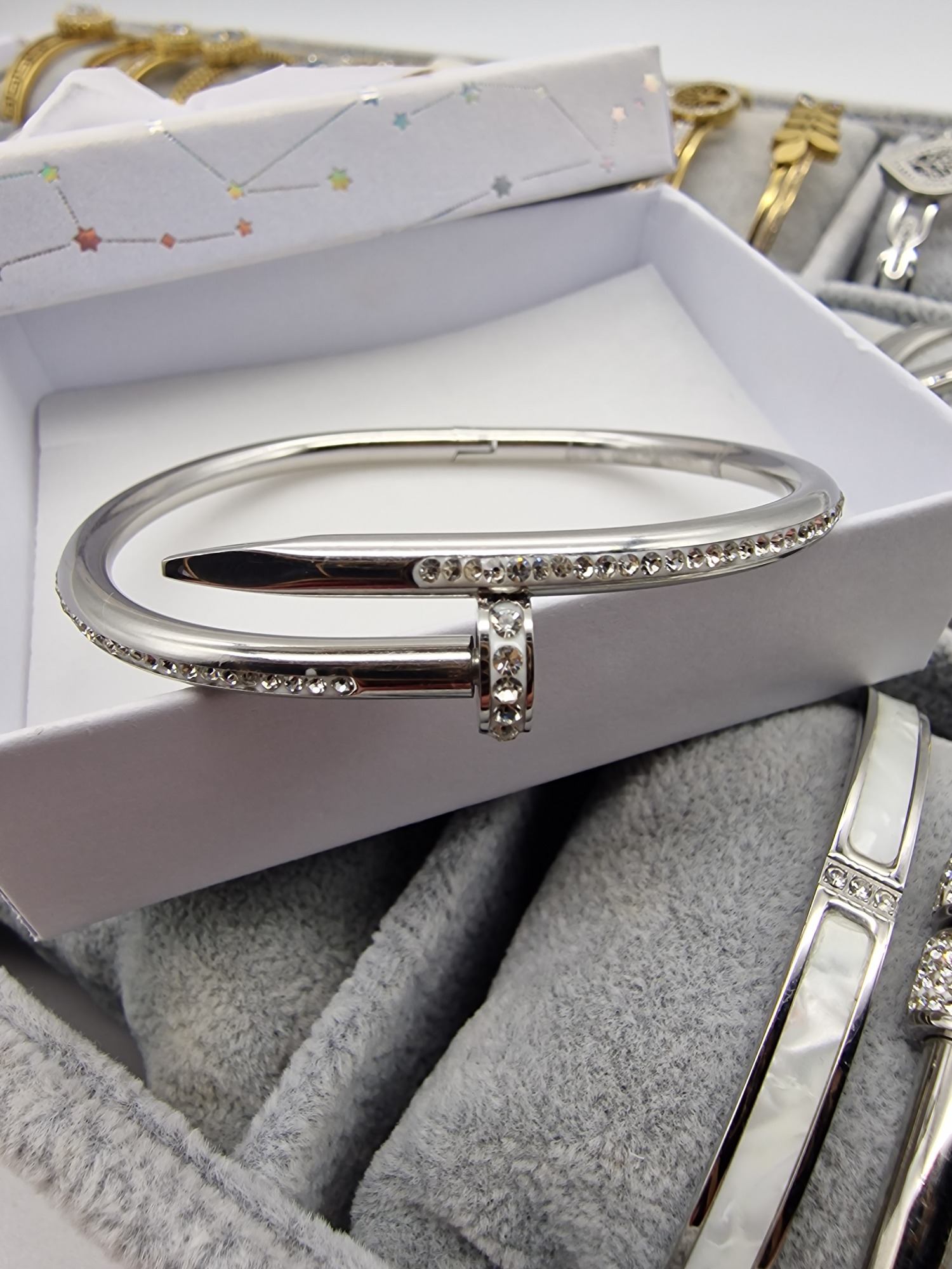 Luxusní dámský náramek Lora hřebík stříbrný zirkony