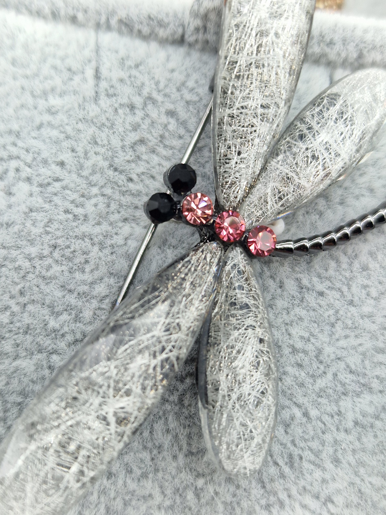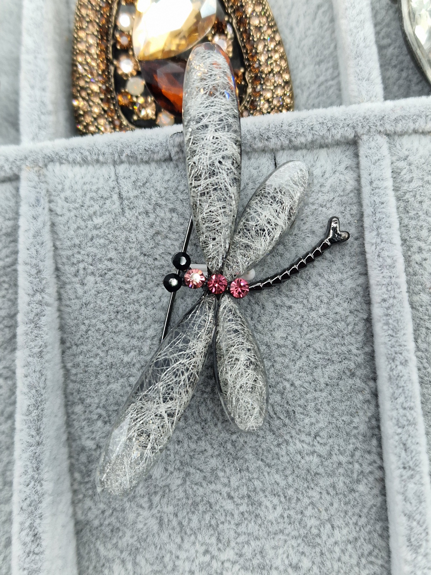 Luxusní brož vážka šedá růžové zirkony