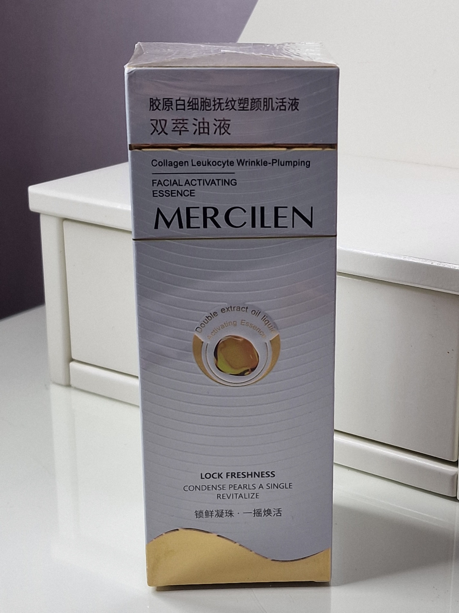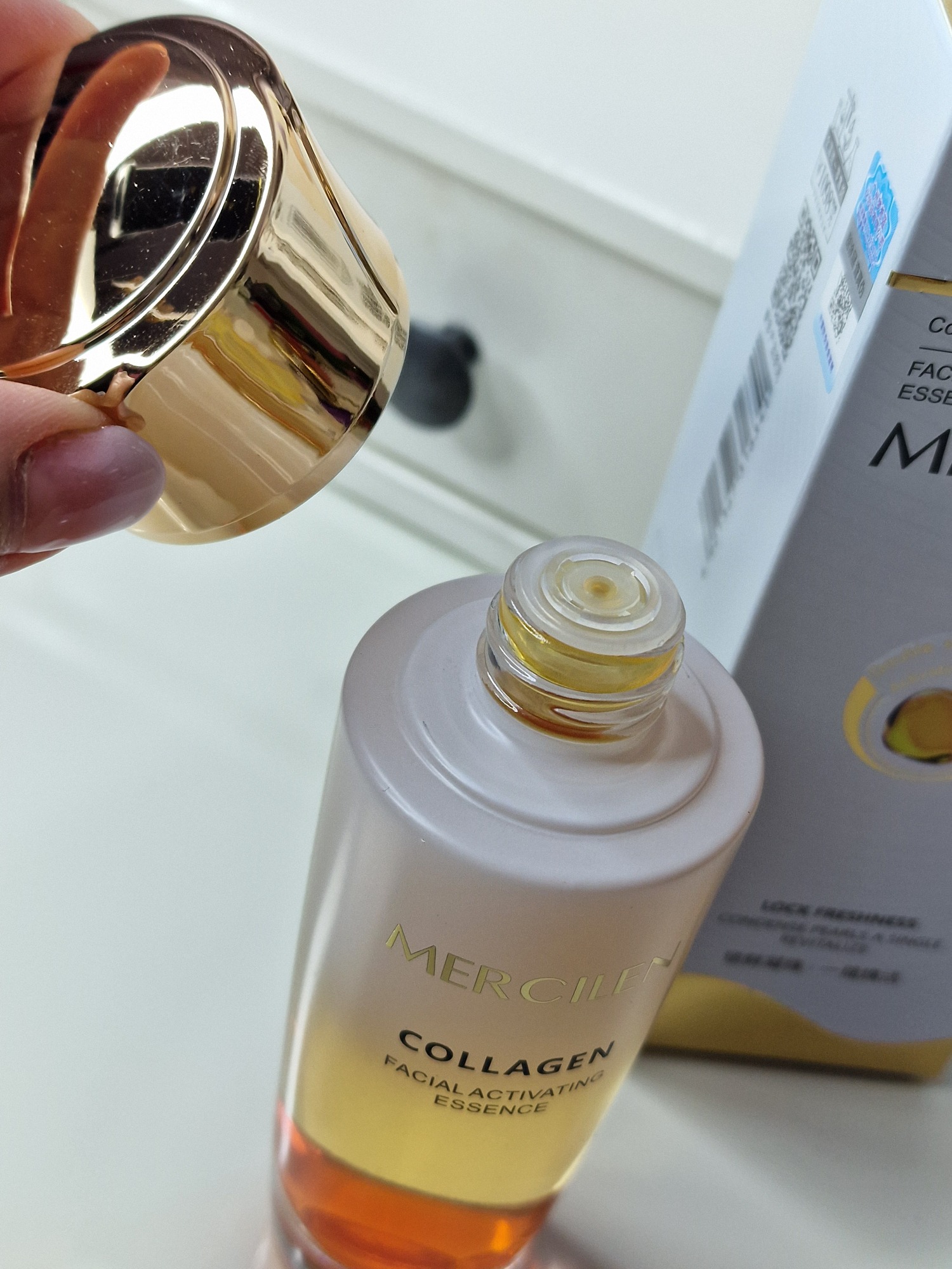 Mercilen Collagen Leukocyte Wrinkle-Plumping Facial Activating Essence, esence na obličej navržená pro anti-aging a hloubkovou hydrataci.