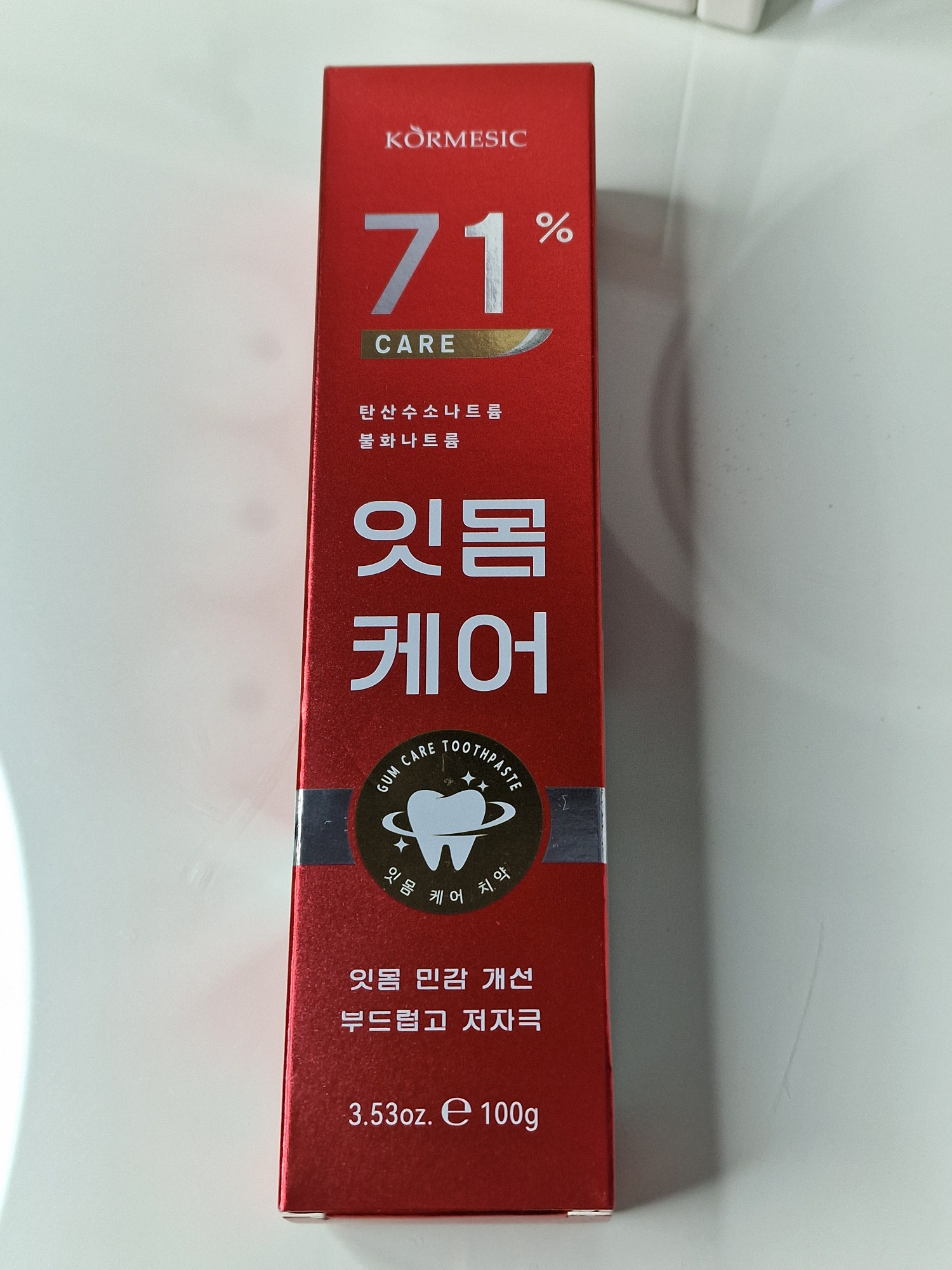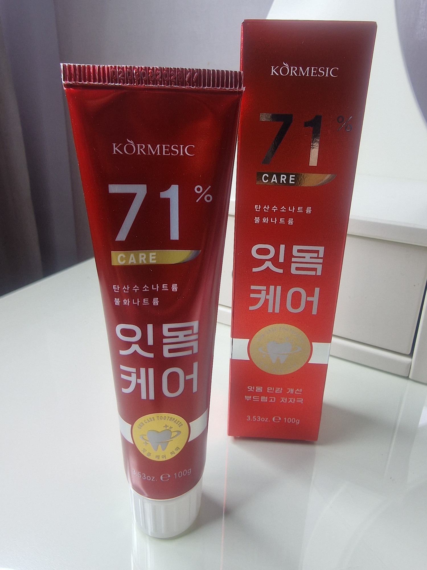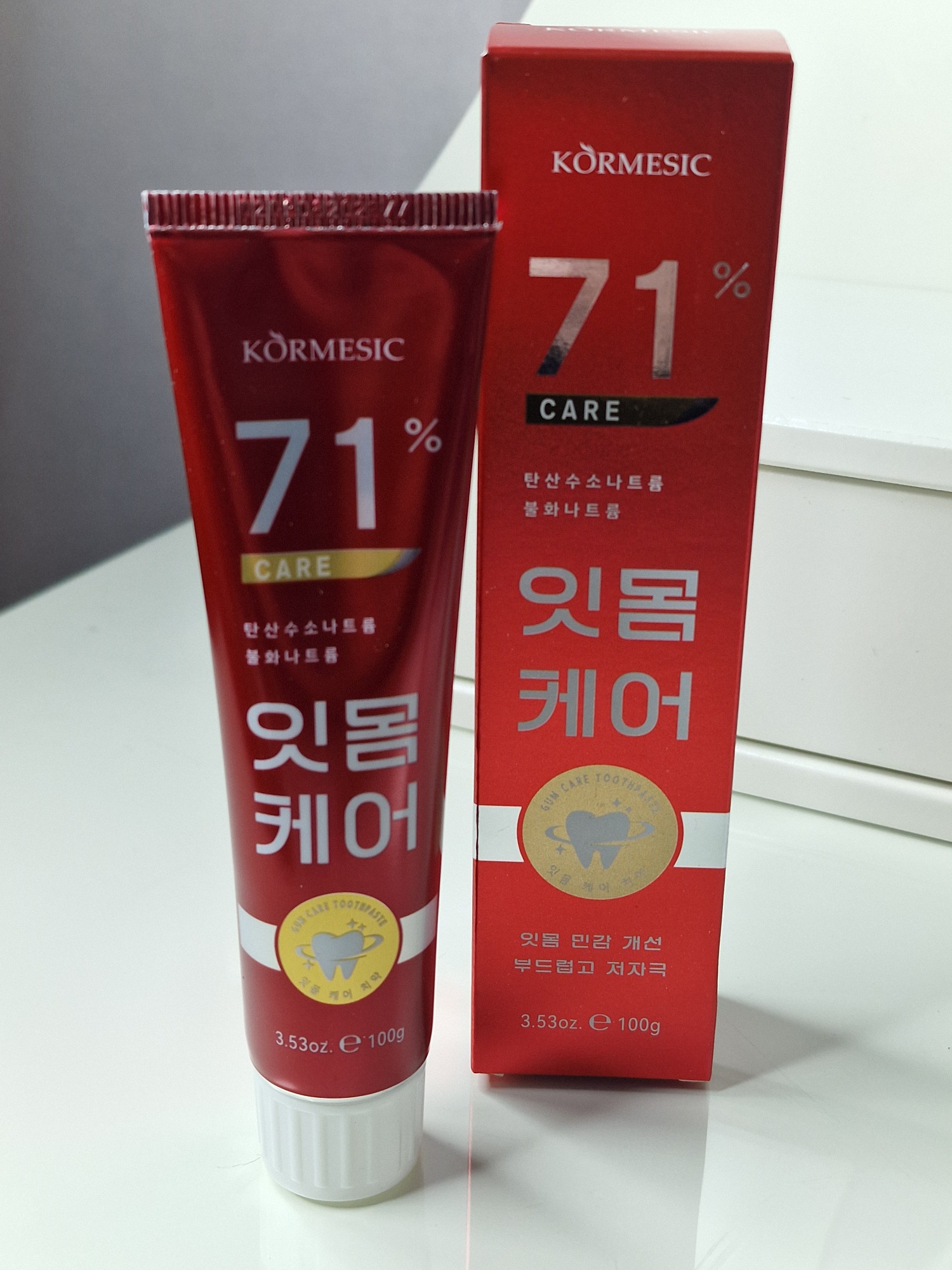 Cormesic 71% Care Toothpaste, což je zubní pasta určená pro péči o dásně a citlivost zubů.