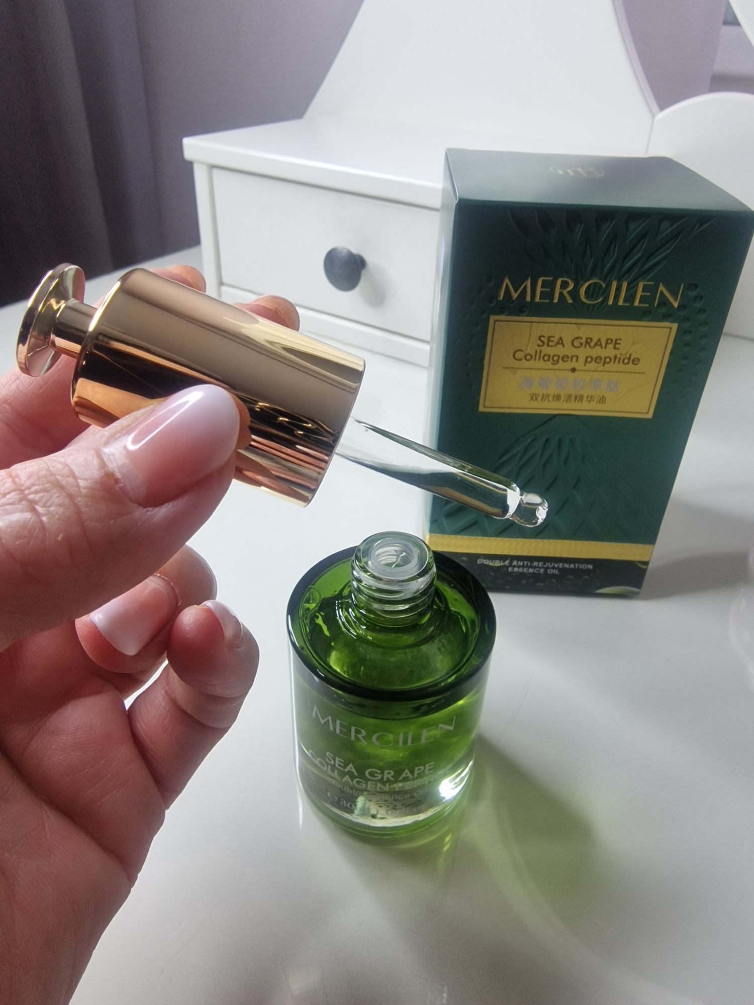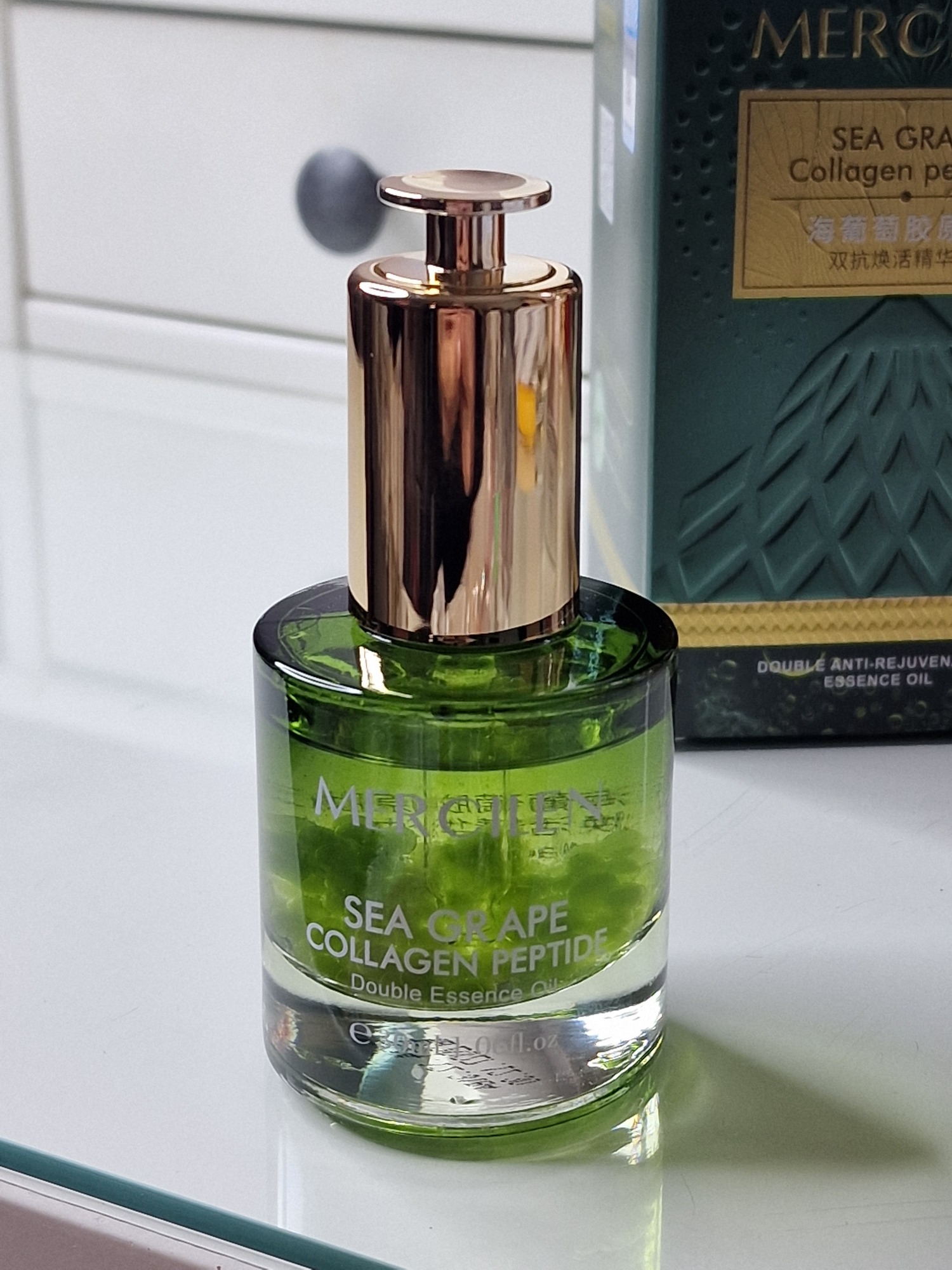 Mercilen Sea Grape Collagen Peptide Double Anti-Rejuvenating Essence Oil (Omlazující esenciální olej s kolagenovými peptidy z mořského hrozna Mercilen).