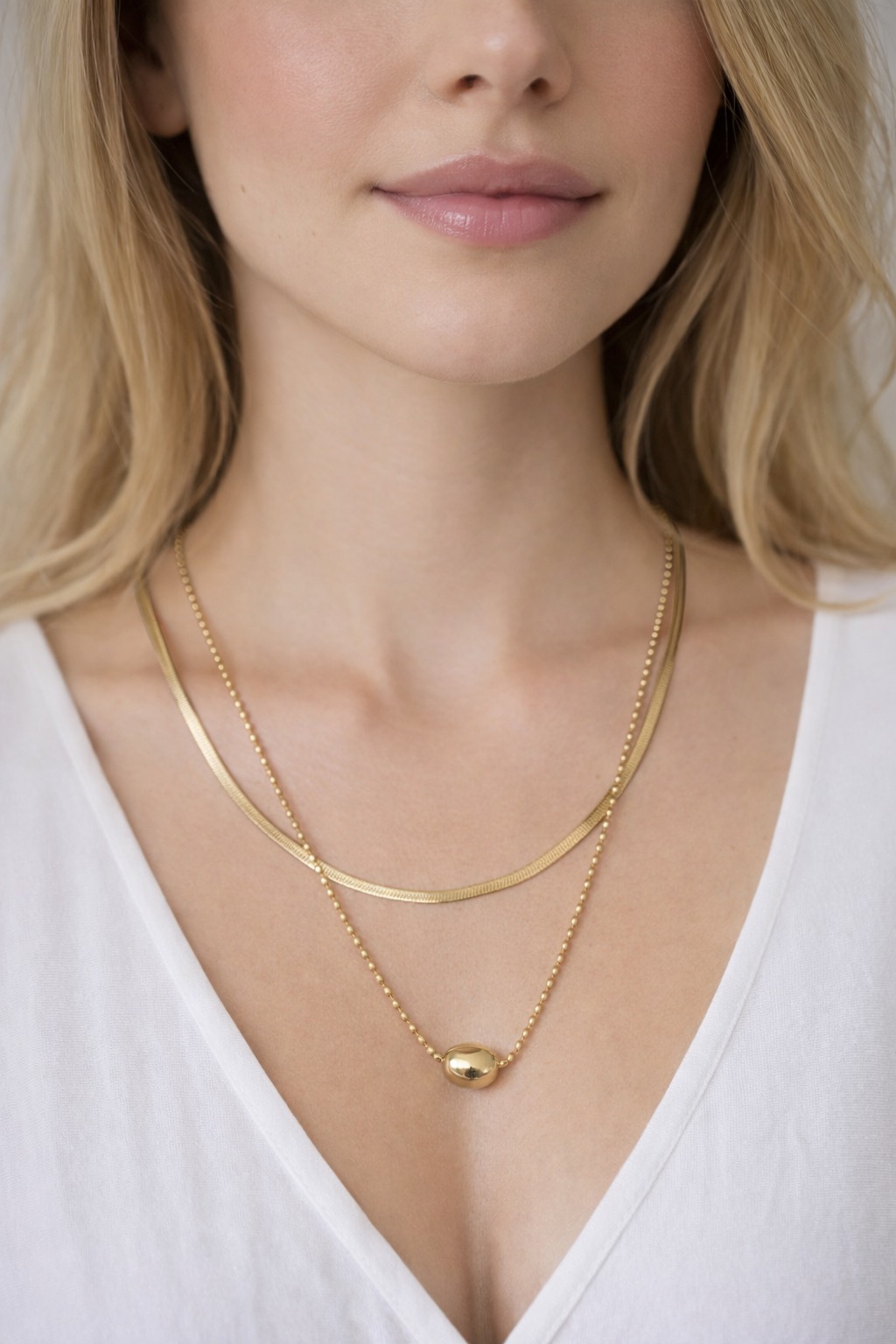 K11 Dámský náhrdelník řetízek na krk dvojitý oválek zlatá barva