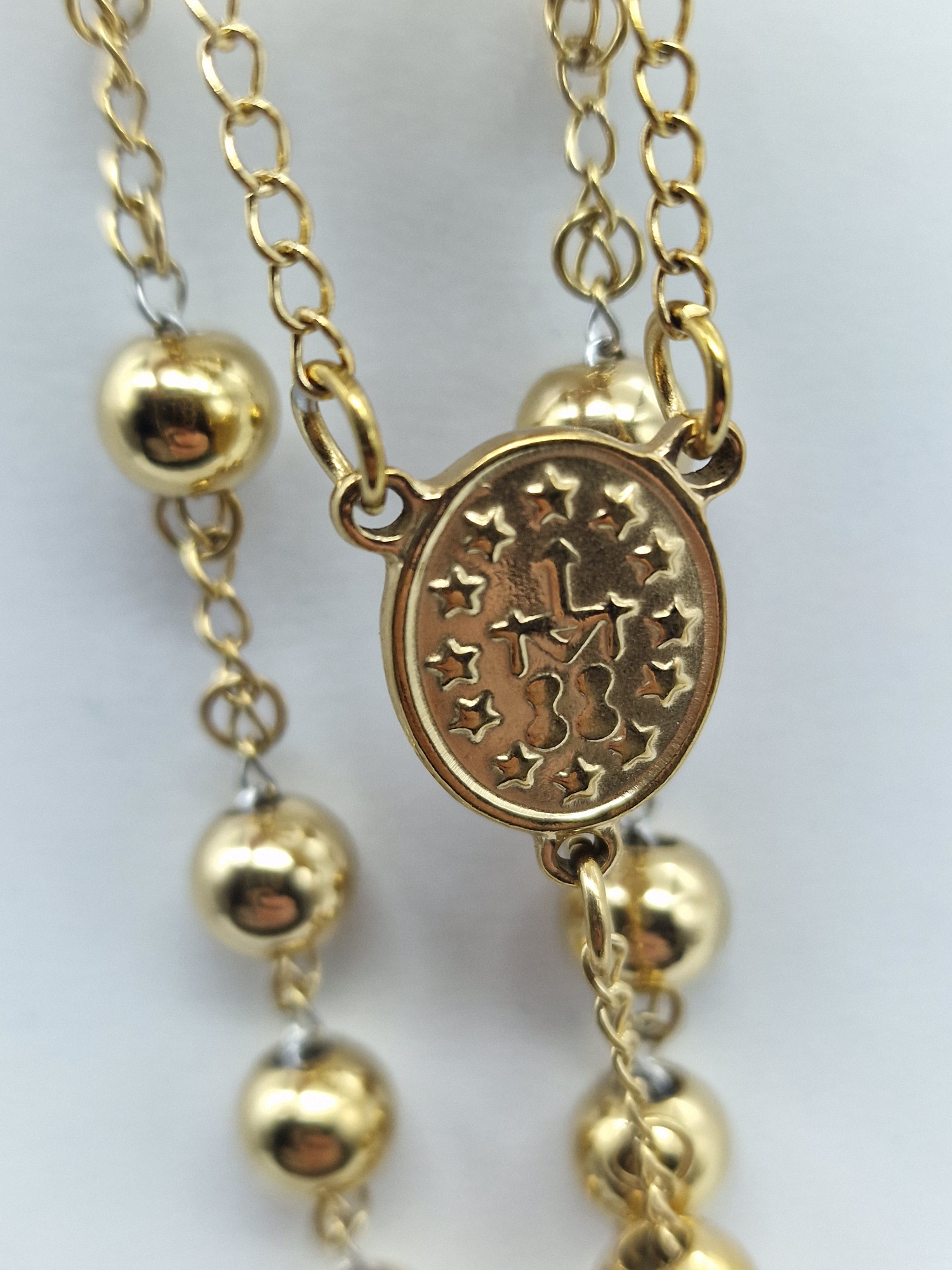 Masivní růženec pozlacená chirurgická ocel 96g