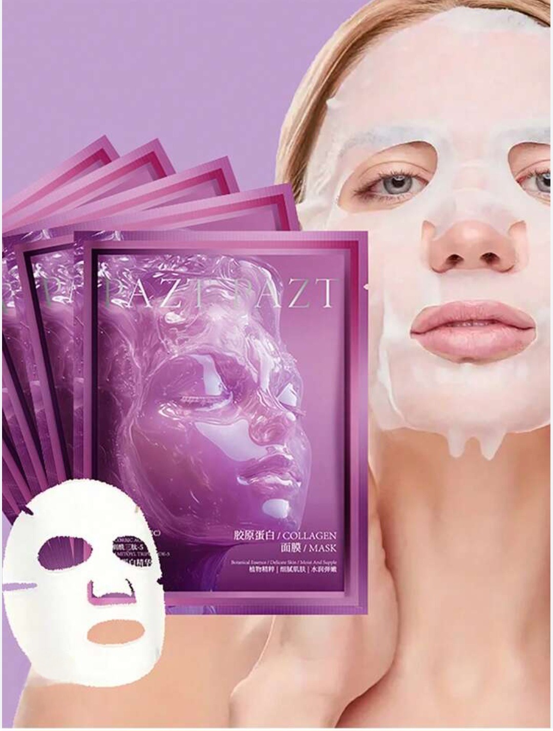 PAZT PAZT Collagen Firming Anti-Wrinkle Soothing Mask je pleťová maska s kolagenem, kyselinou hyaluronovou, niacinamidem a vitaminem C, která pomáhá hydratovat, zklidnit a zanechat pleť jemnější a pružnější.